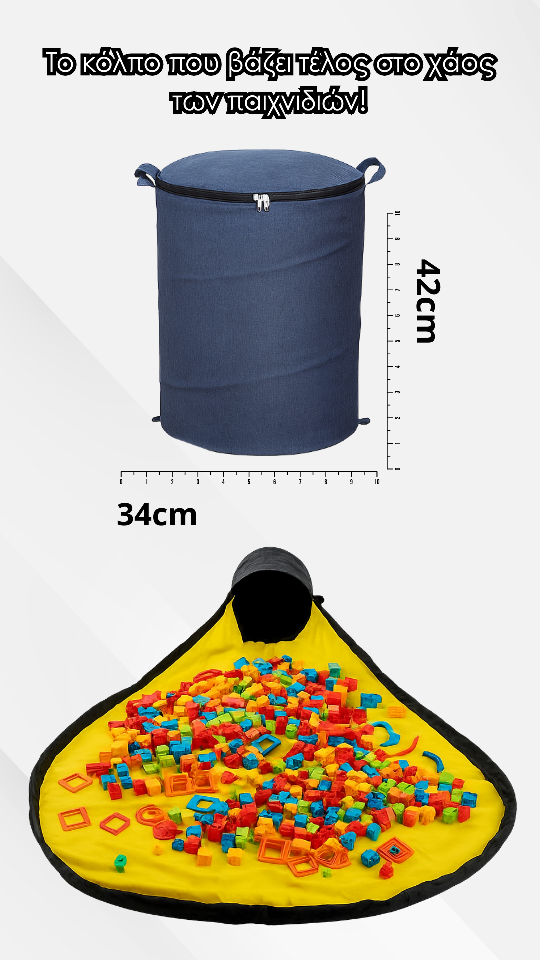 Ξεχειλίζουν παιχνίδια στο χαλί, στον καναπέ, στο τραπέζι;Με αυτή την τσάντα, το παιχνίδι μένει στο χαλάκι – και το σπίτι σου μένει σπίτι.