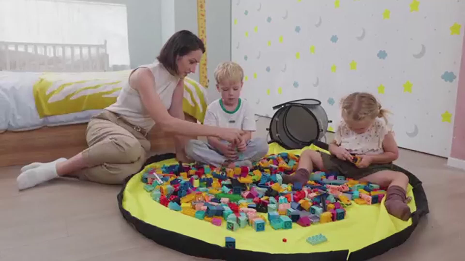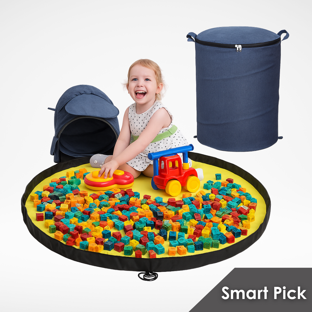 Αν νομίζεις ότι είναι μόνο για Lego, σκέψου ξανά. Αυτοκινητάκια, κουκλάκια, μπάλες, ξύλινα παιχνίδια – ό,τι πιάνει ο μικρός τυφώνας σου, αυτό το smart playmat το μαζεύει.