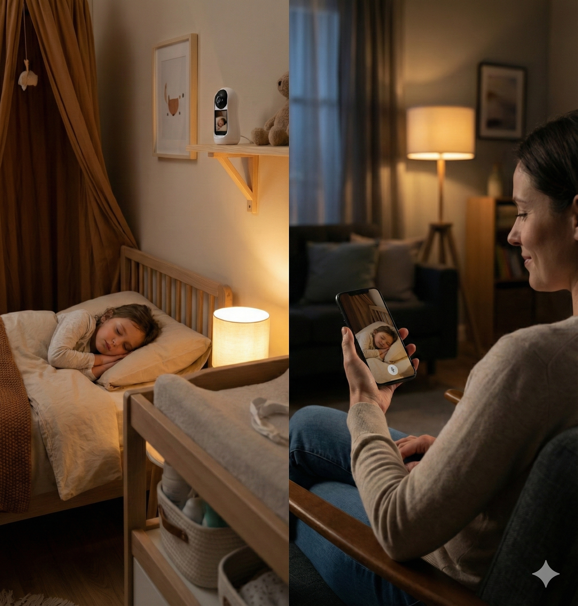 Έχεις ζωντανή εικόνα του παιδικού δωματίου απευθείας από το κινητό σου, είτε το παιδί κοιμάται, είτε παίζει μόνο του.
