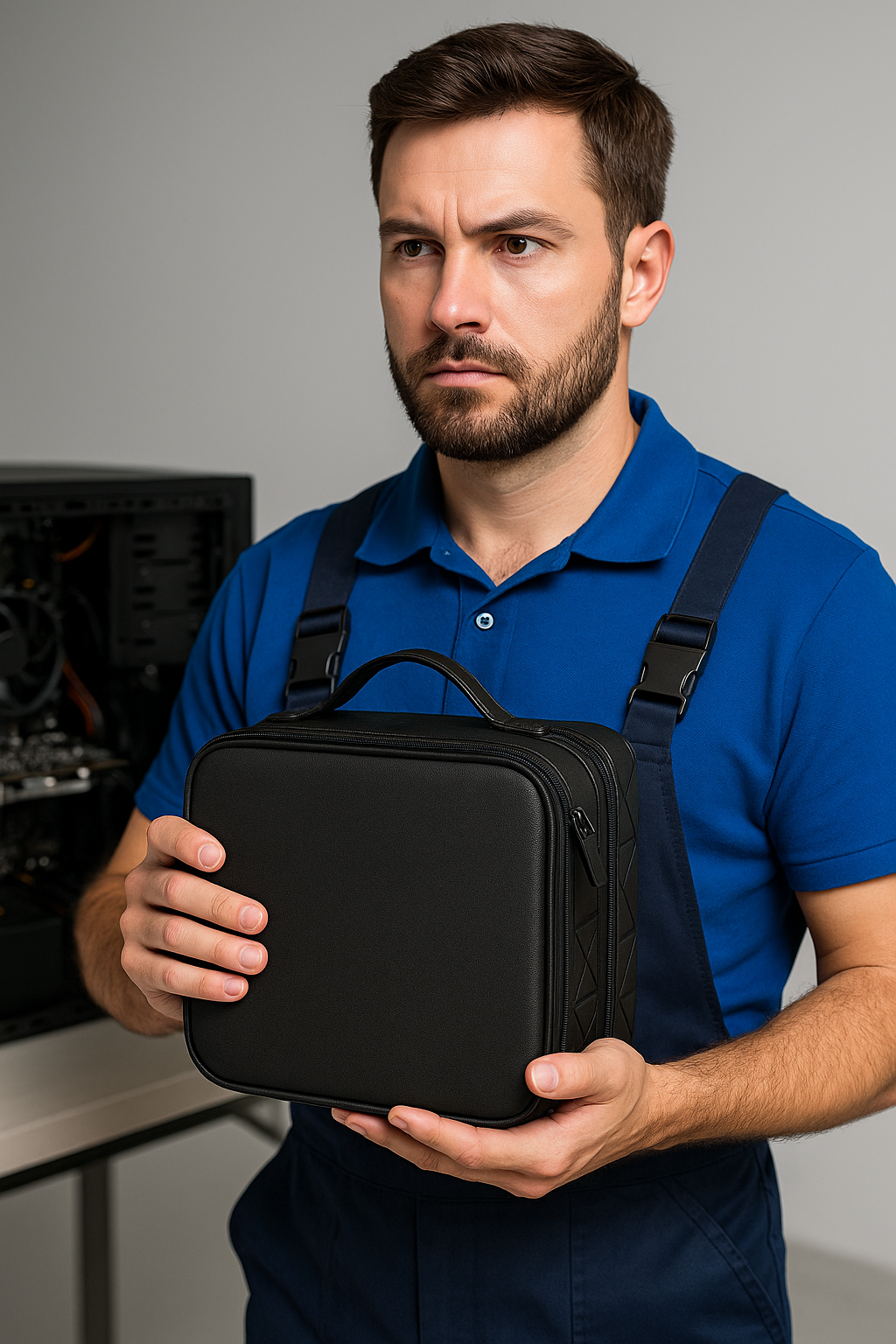 Όχι άλλη πρόχειρη θήκη. Αυτή είναι σχεδιασμένη με ενισχυμένα υλικά και ποιοτικές ραφές, για να αντέχει χτυπήματα, βάρος και συνεχή χρήση — όπου κι αν την έχεις μαζί σου.